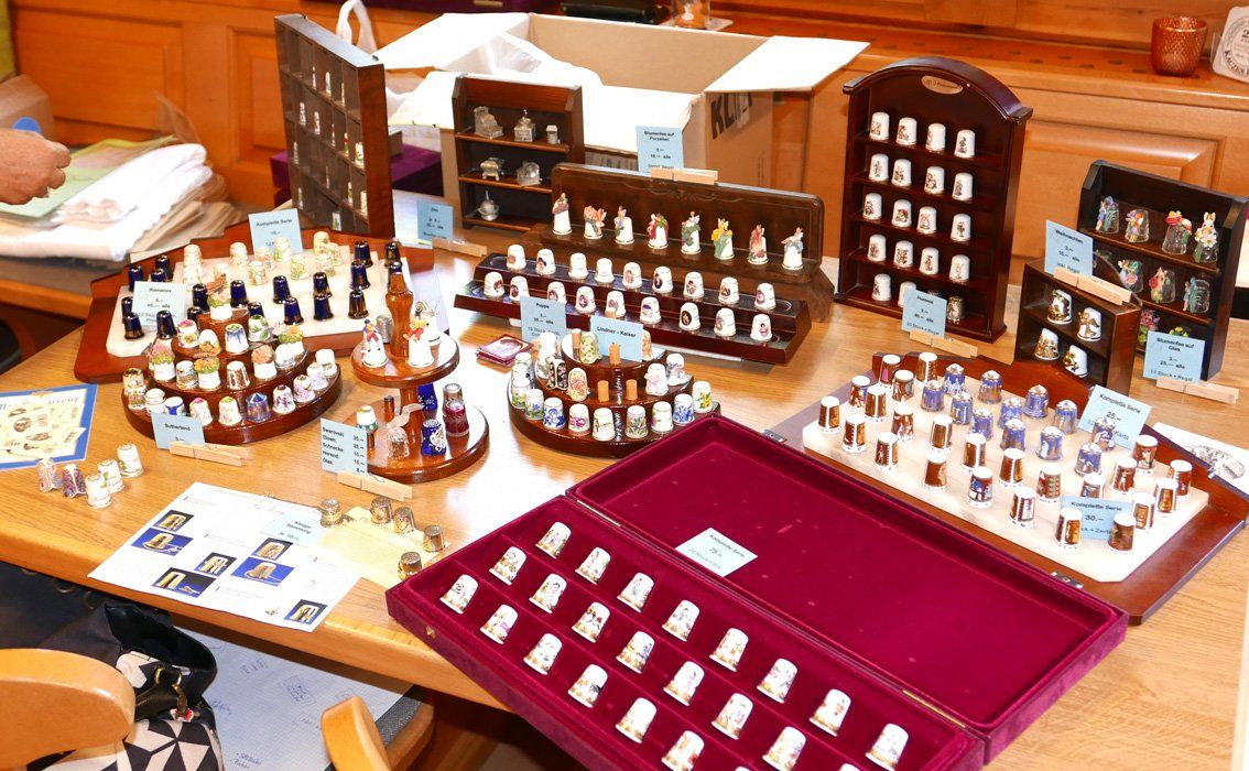 Manchmal bieten auch Händler, die Vereinsmitglied sind, ihre Fingerhüte und Nähutensilien an.